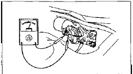 Примечание. Не демонтировать двигатель стеклоочистителя при проведении его проверки, так как будет нарушено соединение с "массой", и двигатель не будет работать.