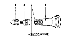 Внимание. Для наворачивания золотника использовать только колпачок-ключ -2-. -1резиновый защитный колпачок, -4- - вентиль.