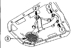 • Отсоединить гайки -1/2- приемной сетки масляного насоса -3- и достать его вместе с прокладкой.