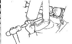• Открутить гайку, которой крепится шаровой палец поперечной рулевой тяги к поворотному кулаку.
