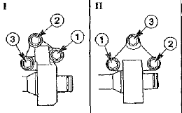 I - последовательность крепления на автомобилях с бензиновым двигателем объемом 2,5 л II - последовательность крепления на автомобилях с бензиновым двигателем объемом 1,9/2,0/2,2 л Дизельный двигатель