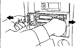 Автомобили выпуска с 08/97 Снятие Примечание. В данном руководстве рассматривают снятие и установка радиоприемника "Мазда" со съемной панелью управления.
