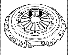 • Отметить чертилкой положение нажимного диска по отношению к маховику.