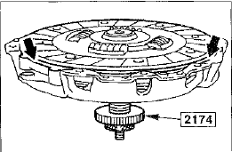 • Завернуть винты крепления корзины сцепления, а затем крест-накрест подтянуть винты на два оборота. Момент затяжки: 25 Нм.