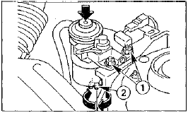 • Вывернуть на один оборот резьбовую пробку [2] в направлении, указанном стрелкой.