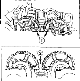 ного вала -2-. Если маркировки не совпадают, прокрутить коленчатый вал еще на один полный оборот.