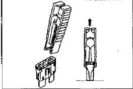 Съемник предохранителей располагается в ящике для предохранителей, расположенном со стороны водительского сидения. С помощью съемника вынуть предохранитель (съемник можно использовать для демонтажа некоторых реле).
