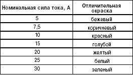 нителя указана на тыльной стороне его корпуса. Кроме того, о данной величине можно судить по особой окраске предохранителя.
